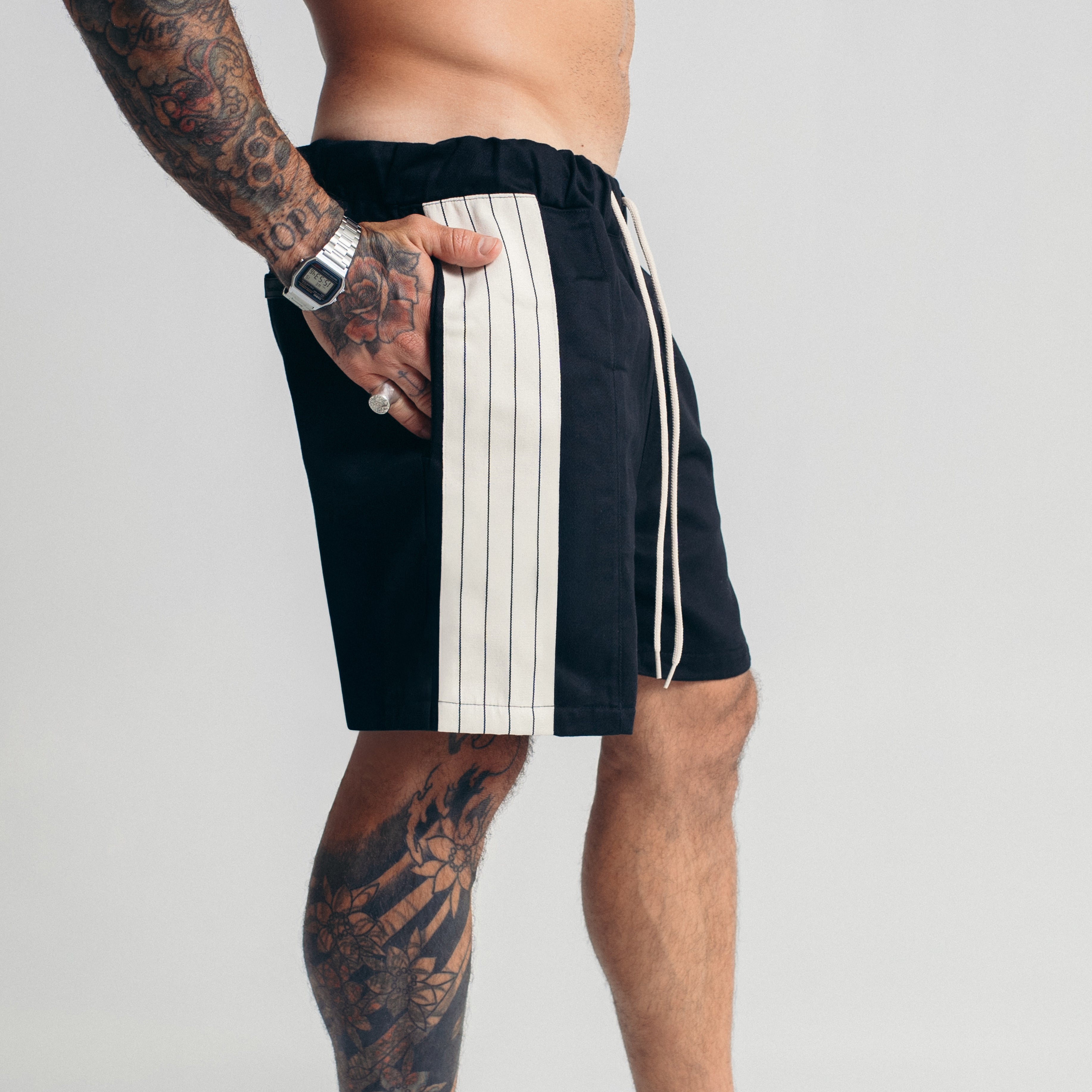 A Bermuda de Sarja Side Stripe é um produto com estética Streetwear e acabamento de alta qualidade. Tem costura interna reforçada e pespontos em toda a peça, garantindo durabilidade e atenção aos detalhes.
